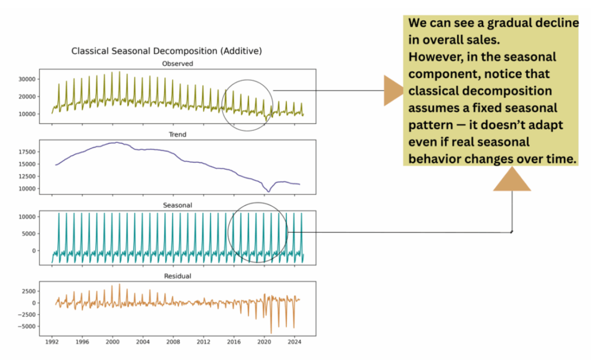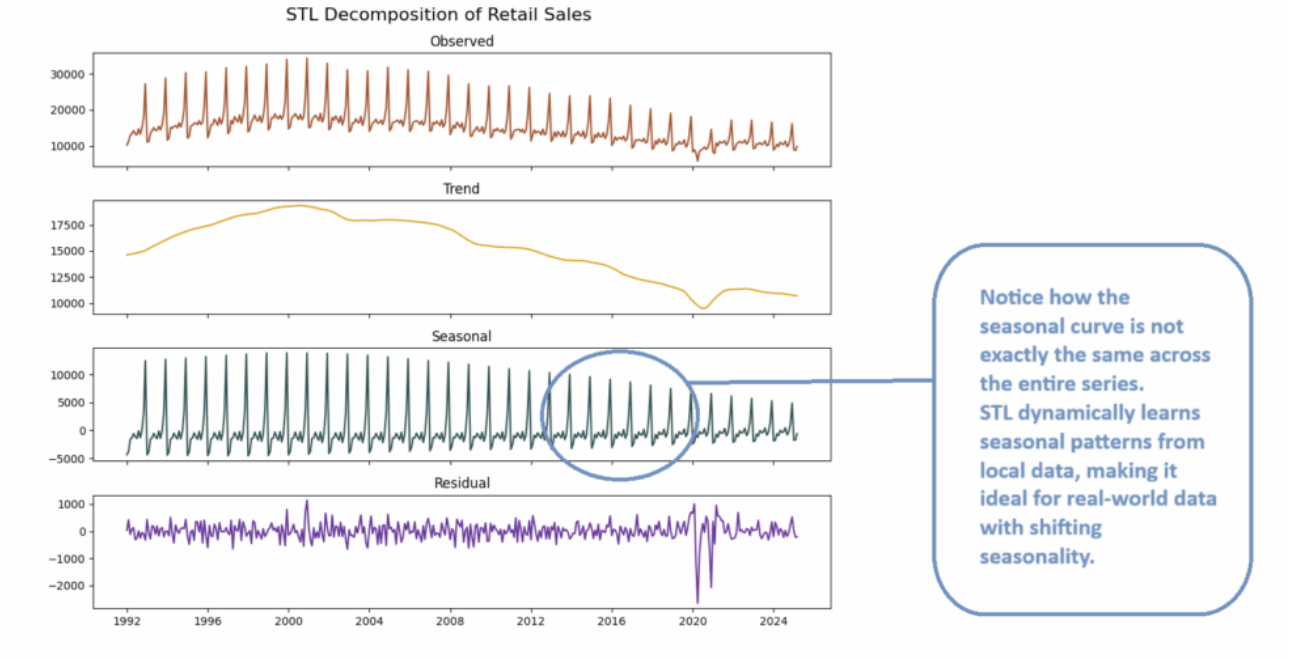 Takeaway: STL is more flexible and robust than classical decomposition, making it a preferred choice when patterns evolve over time.